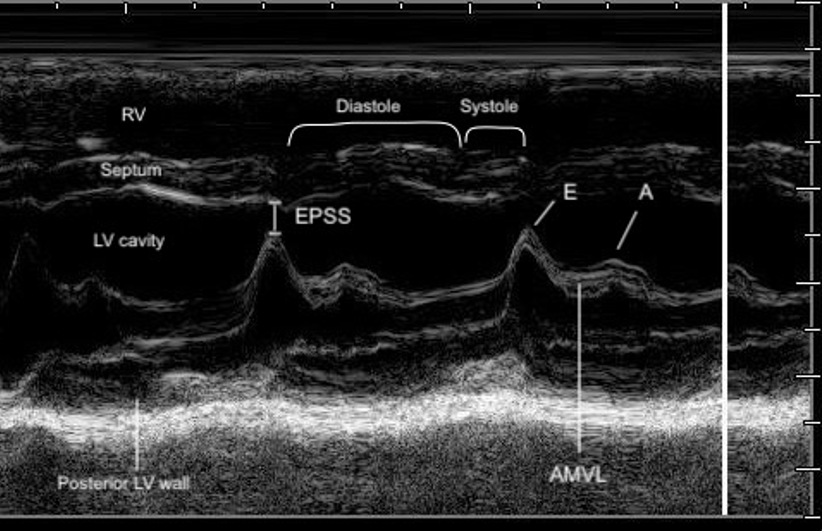 Figure 8. Zoomed-in view of the PLAX M-mode tracing at the level of the mitral valve tips.