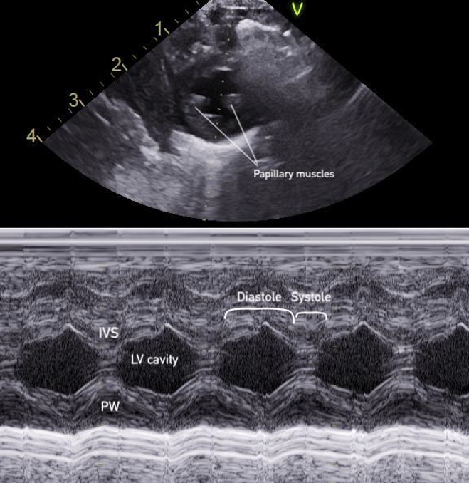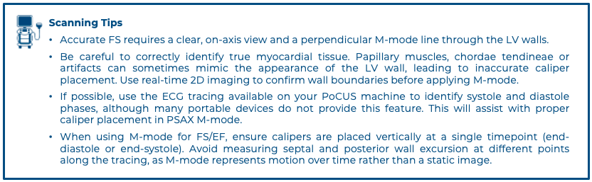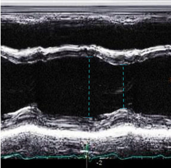 Figure 16. LVIDd and LVIDs caliper placement for FS/EF calculation in PSAX M-mode