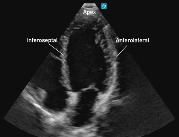 Figure 19: Apical 4 Chamber view in cardiology convention with the labeled left ventricular walls